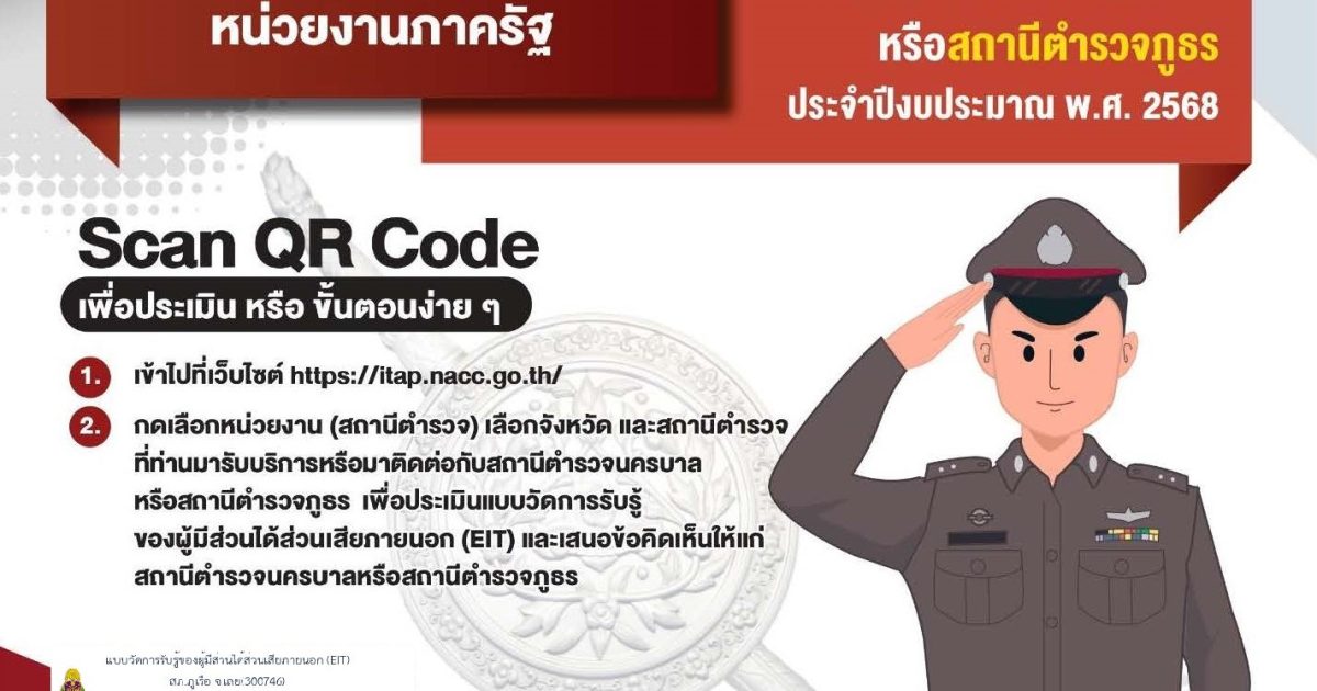 แบบวัดการรับรู้ของผู้มีส่วนได้ส่วนเสียภายนอก (External Integrity & Transparency Assessment: EIT) 2025 สำหรับนำไปพัฒนาปรับปรุงการให้บริการของสถานีตำรวจ