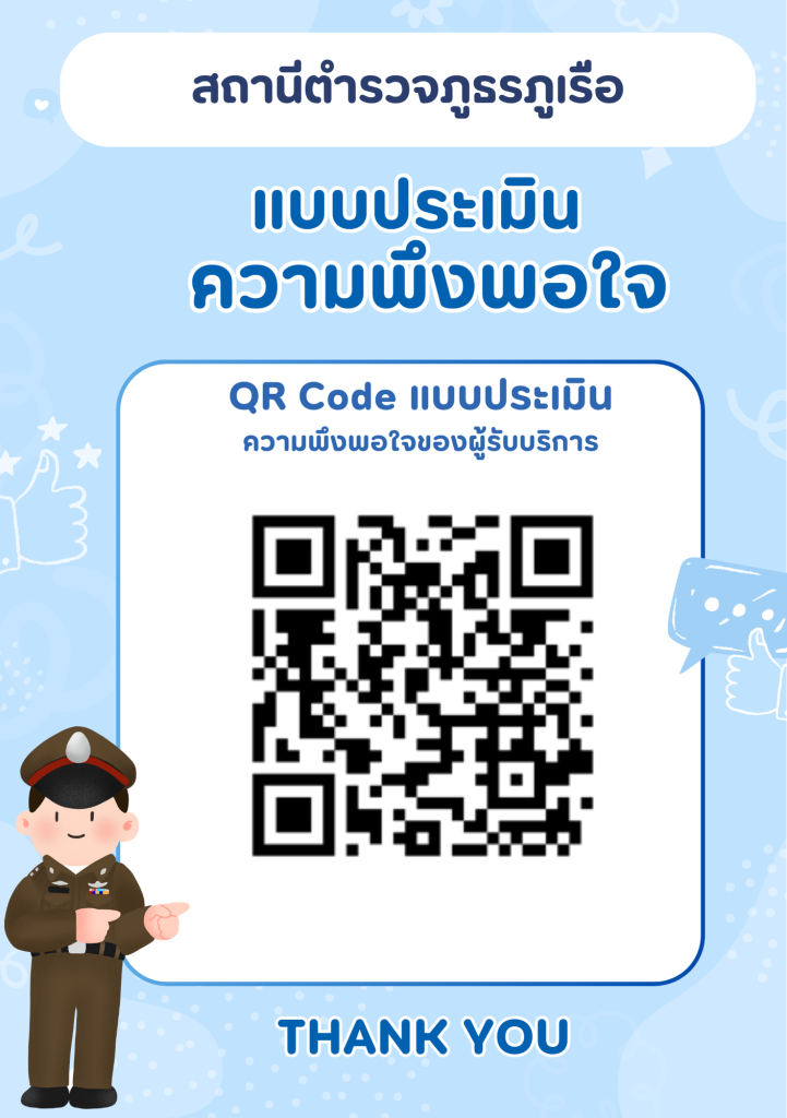 ขอเชิญชวนประชาชน หรือผู้รับบริการ ประเมินความพึงพอใจการให้บริการของสถานีตำรวจ